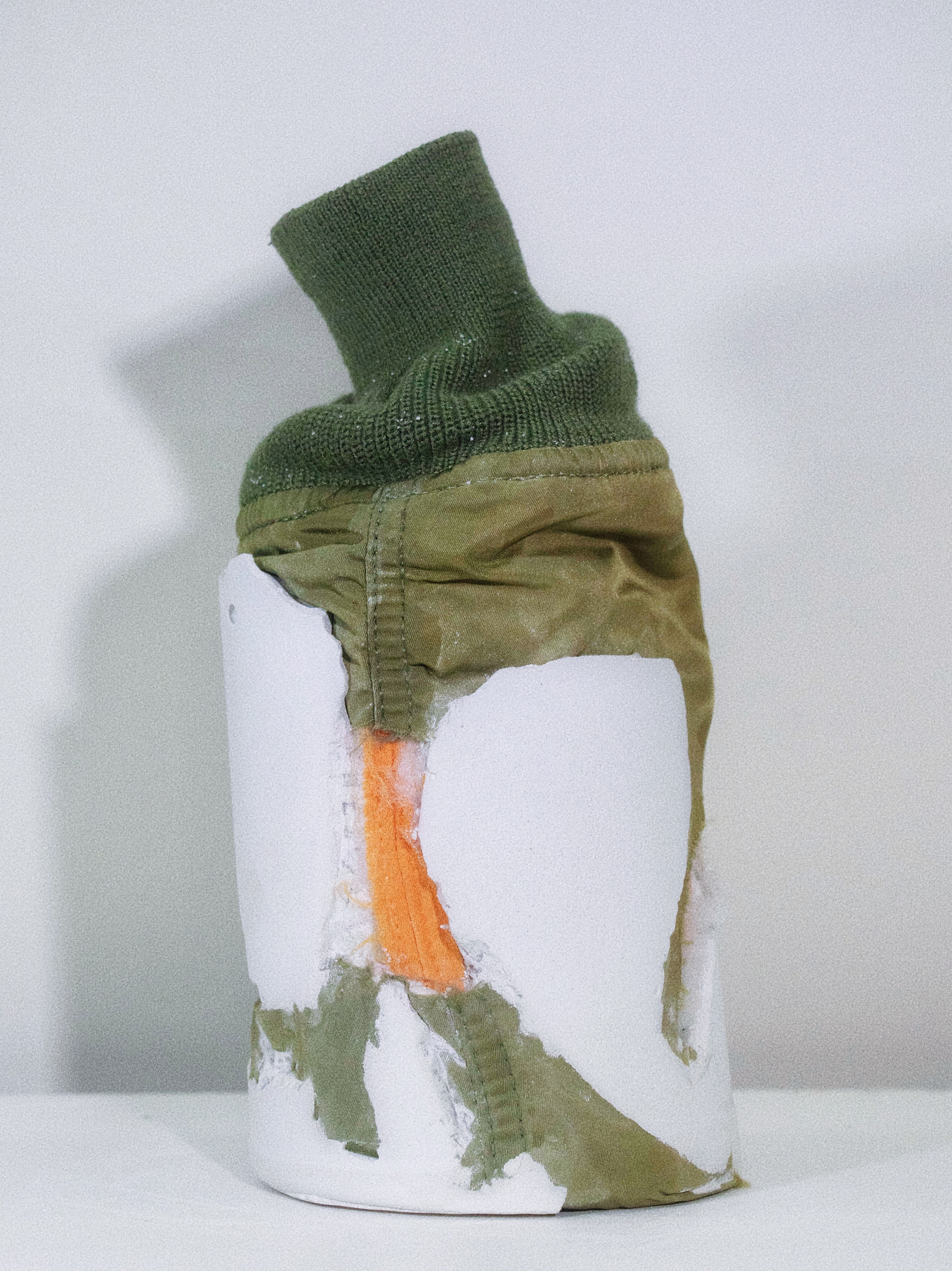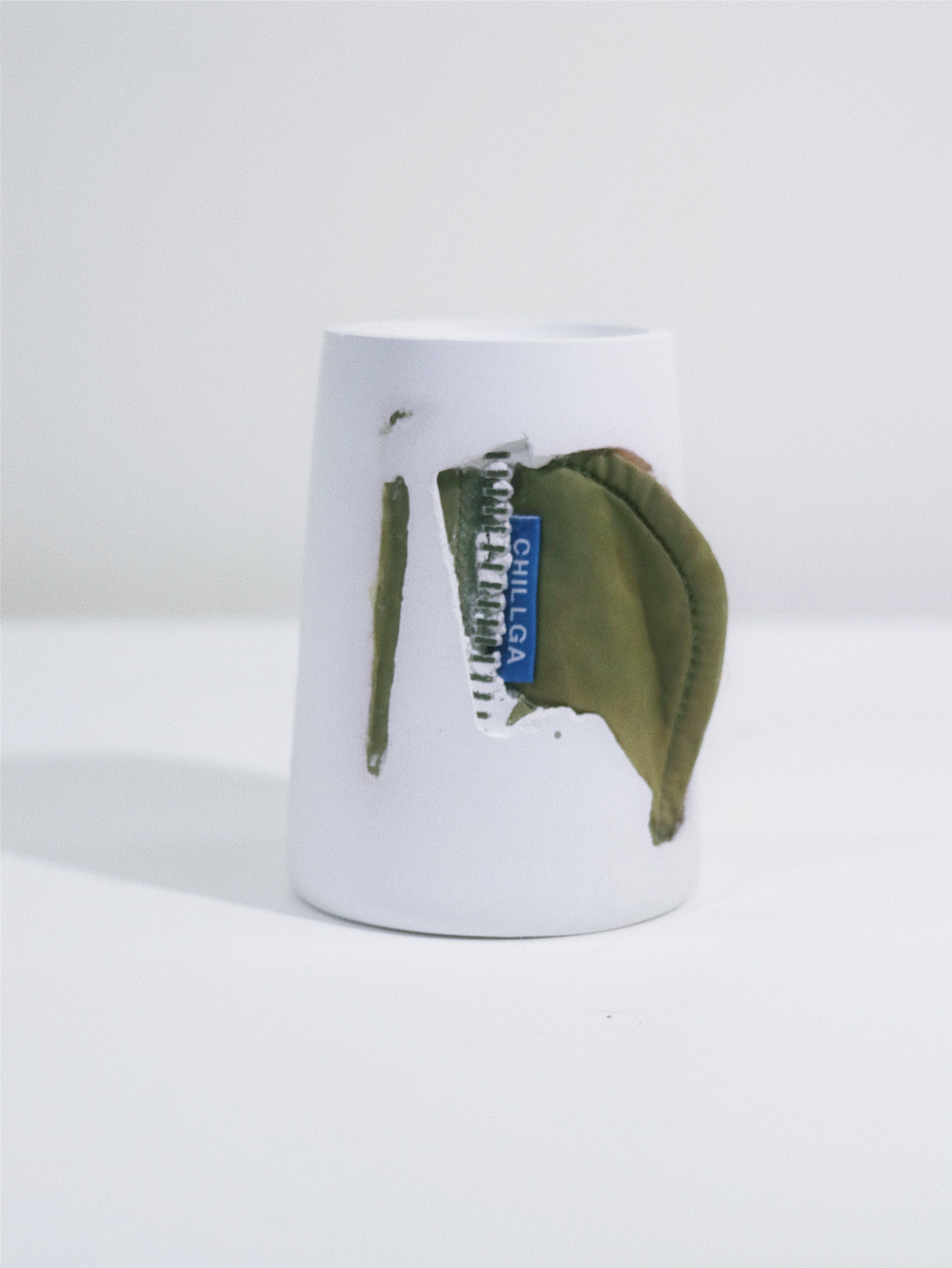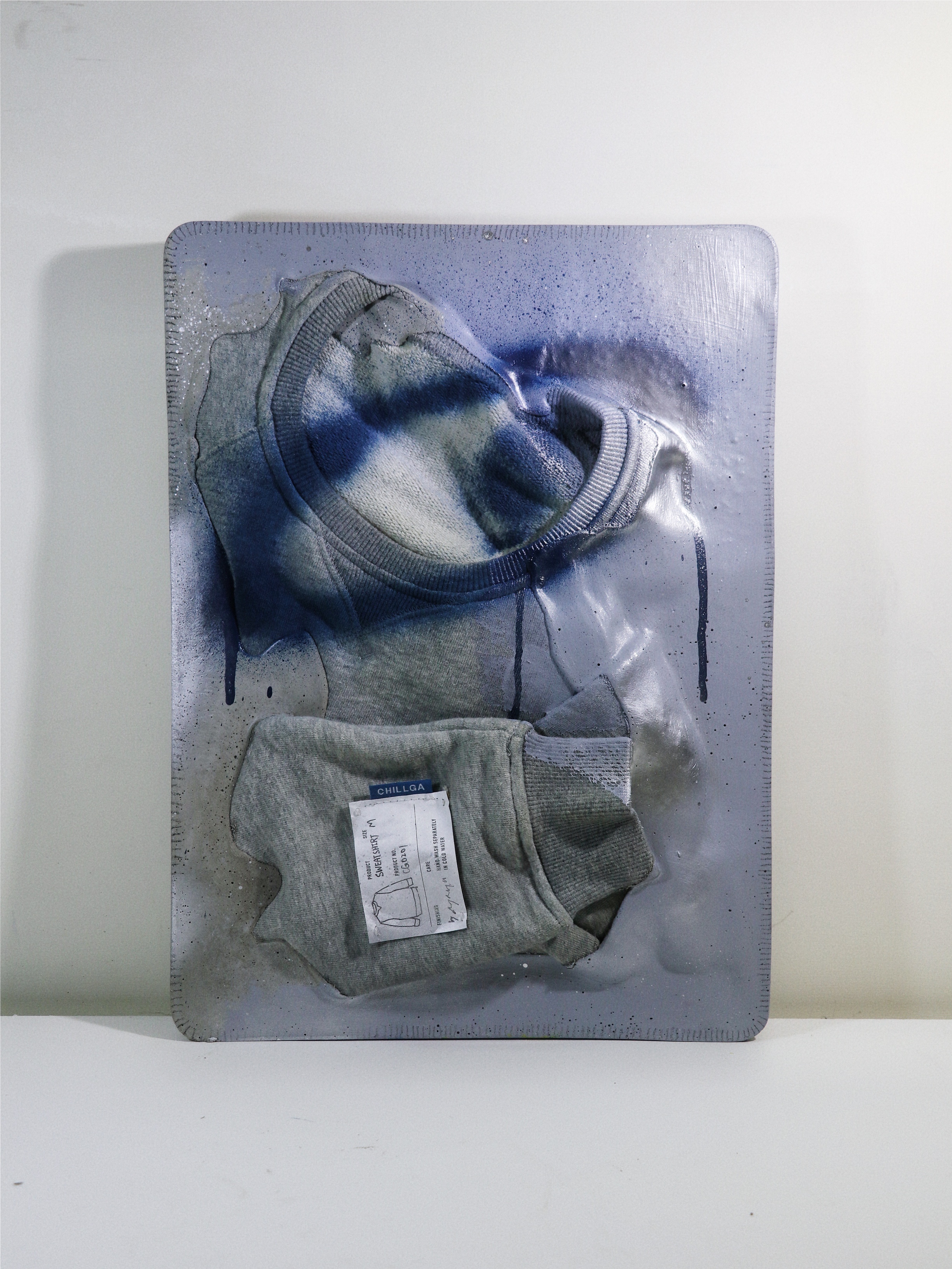 CHILLGA envisions breaking away from the ordinary. In 2021, for the first time, I dismantled and reconstructed clothing with cement to create a new look. This ongoing series continues to explore the possibilities of clothing beyond the confines of the body, incorporating canvases, sculptures, and various processing techniques. It reflects on the relationshi between people and objects, reinitiating a new dialogue.